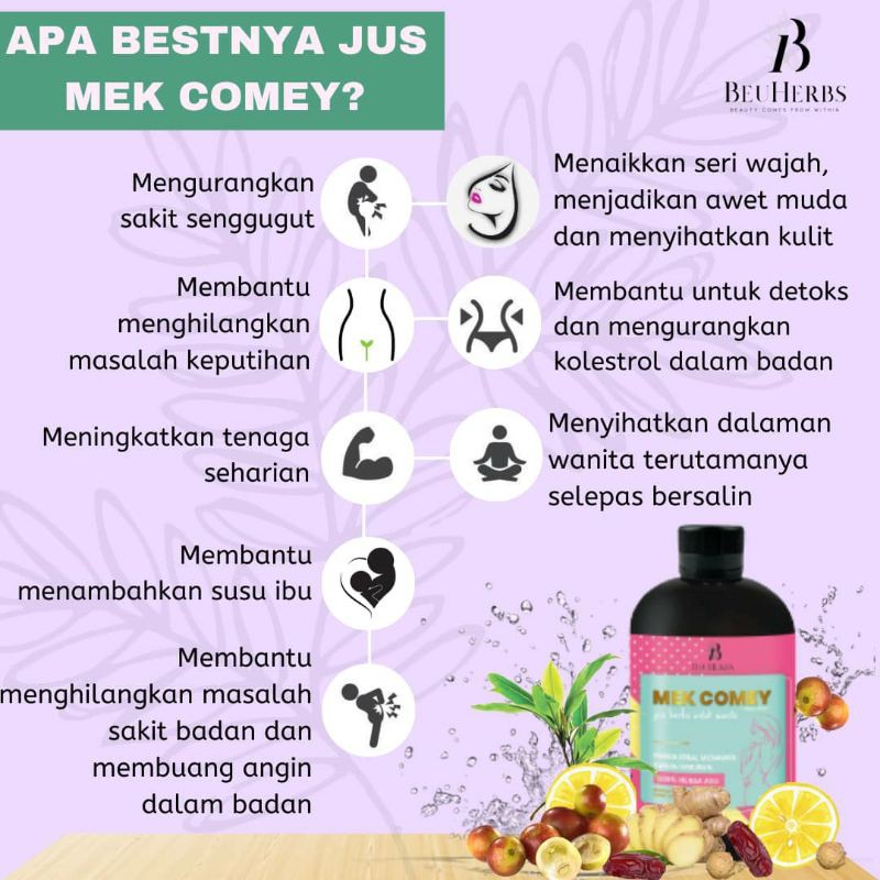 Membantu perkembangan otak baby (tinggi folic acid); Saya minum jus ibu mamariam sebelum makan pagi.